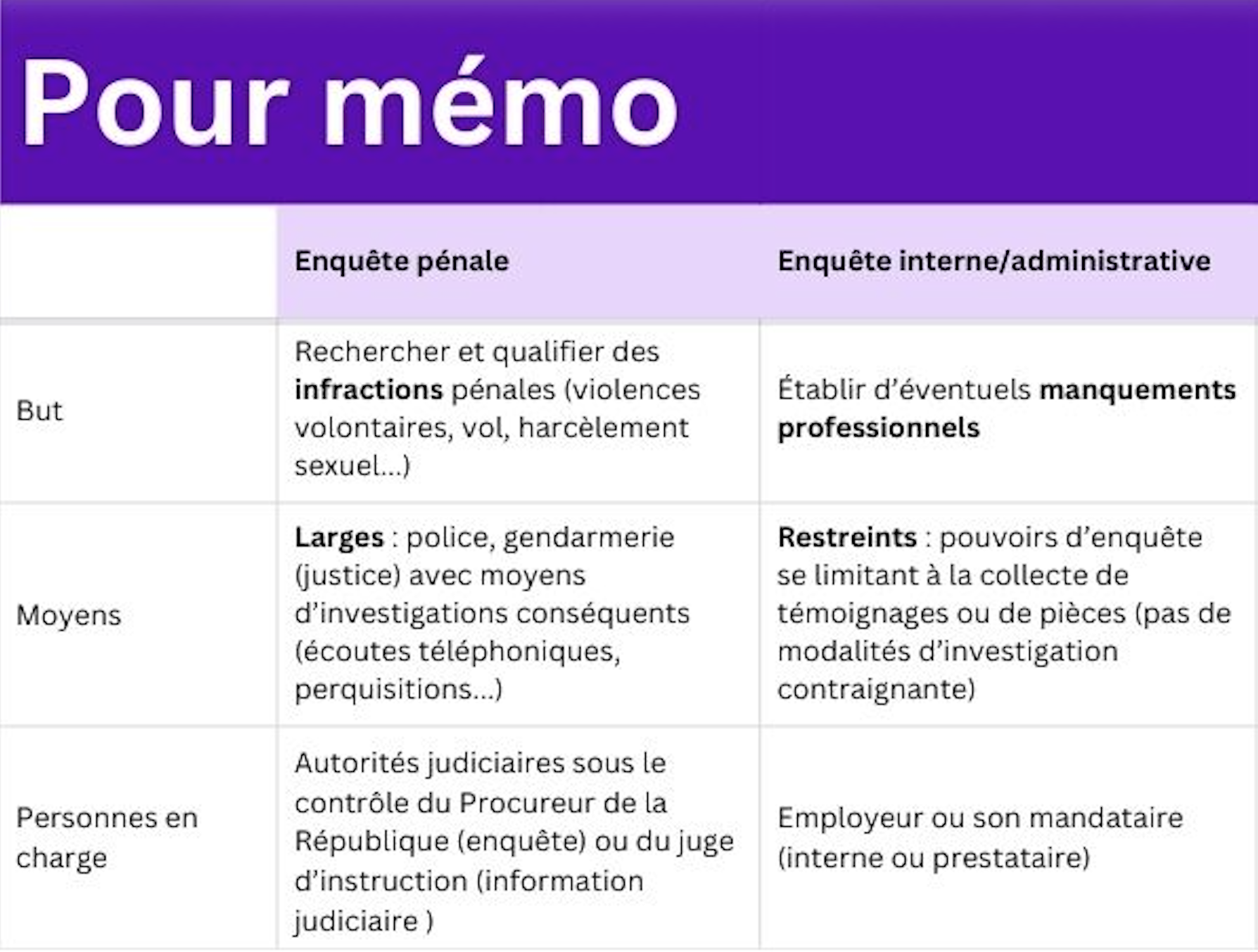 4️⃣ L’objectif d’une enquête interne n’est pas de qualifier juridiquement des infractions pénales, mais de matérialiser et caractériser des manquements professionnels.